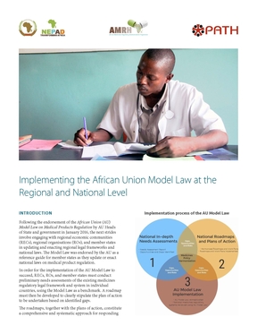 Model Law on Medical Products Regulation by AU Heads of State and government in January 2016, the next strides involve engaging with regional economic communities (RECs), regional organisations (ROs), and member states in updating and enacting regional legal frameworks and national laws. The Model Law was endorsed by the AU as a reference guide for member states as they update or enact national laws on medical product regulation.